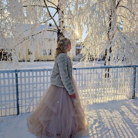 Ateljee Katariinan mekko. Kahdet tanssit tanssittu. Kunto hyvä. Ollut S kokoisella 167 senttisellä tennareiden kanssa. Saa takana olevien nyörien avulla säädettyä kokoa. Mukaan vannehame sekä halutessa kuvassa näkyvä viitta.