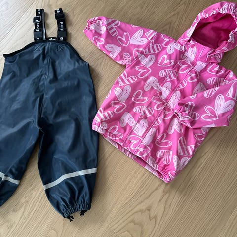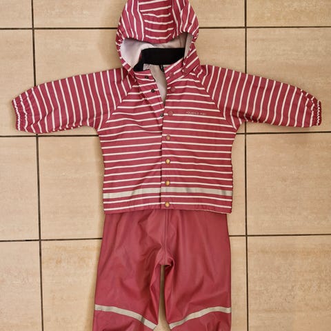 Oranssi Ciraf sadetakki ja kurahanskat (ehjät) 5€. Kaikkien takkien sisävuoren alaosassa hieman tummentumia, muuten takit hyvässä kunnossa.