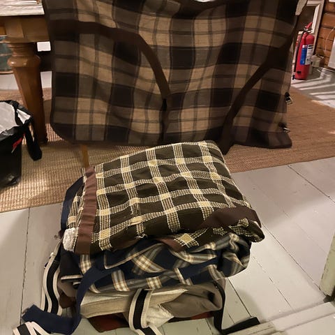Hevonen lähti jonkin aikaa sitten jo niin viimein tavaroistakin voisi luopua. Pesemättömiä loimia.