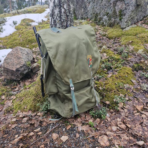 Myydään siistikuntoinen rinkka, jonka valmistaja on Finn-Savotta. Kaikki kiinnikkeet ja kankaat ovat ehjiä. Rinkkaa on säilytetty lämpimissä sisätiloissa. Käyttö on ollut vähäistä. Kaaressa on pientä maalin kulumaa. Soljet ovat metallia.