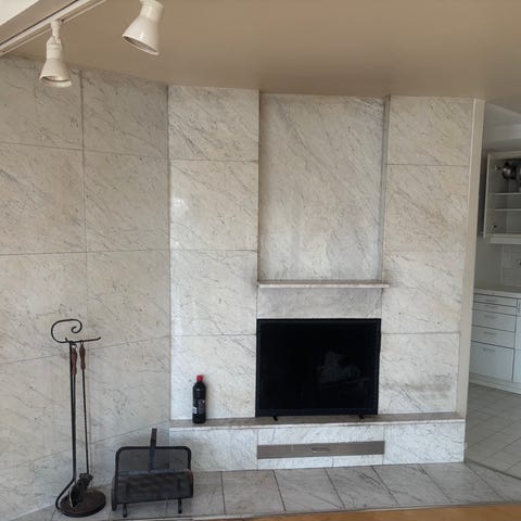 Valkoinen laatoitettu takka
