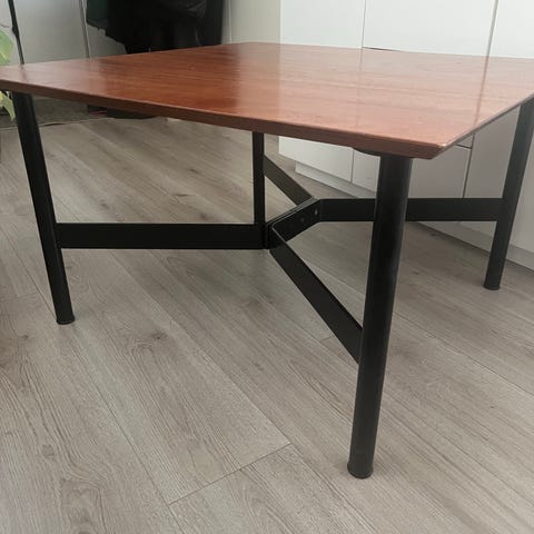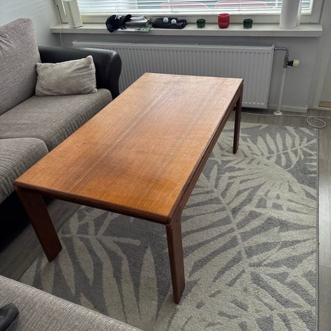 Ihana ja persoonallinen sohvapöytä tiikistä ja hartsista. Tämä oli meillä n. vuoden ajan väliaikaisena sohvapöytänä ja joutaa nyt myyntiin DIY-projektin valmistuttua.