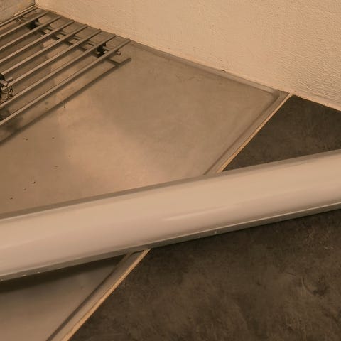 Tason alle kiinnitettävä valaisin kahdella pistorasialla ilman putkea. Muutoin täysin toimiva. Kuvun reunassa korjattu pieni halkeama mikä ei näy valaisimen ollessa kiinnitettynä.