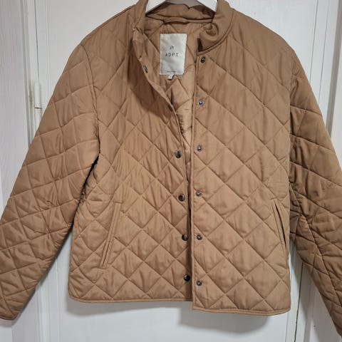 Vaalean beigen sävyinen tikkitakki. Nappikiinnitys edessä ja hihansuissa. Koko xs, kuitenkin aika isohkoa kokoa.