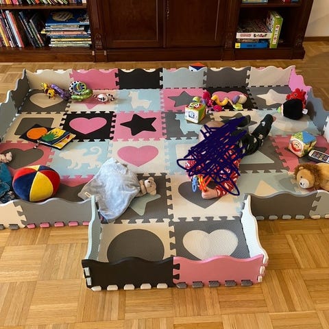Vauvan leikkimatto pehmoleluilla