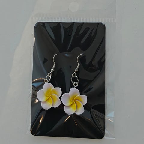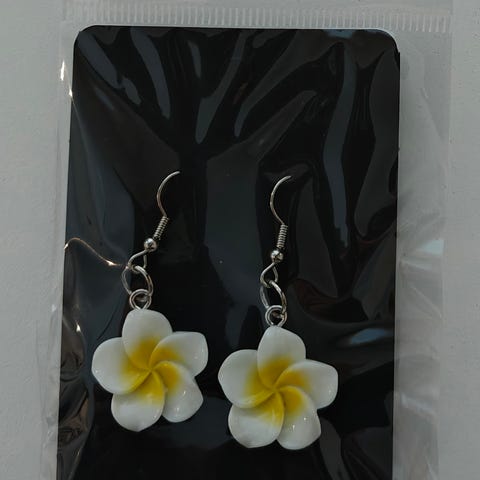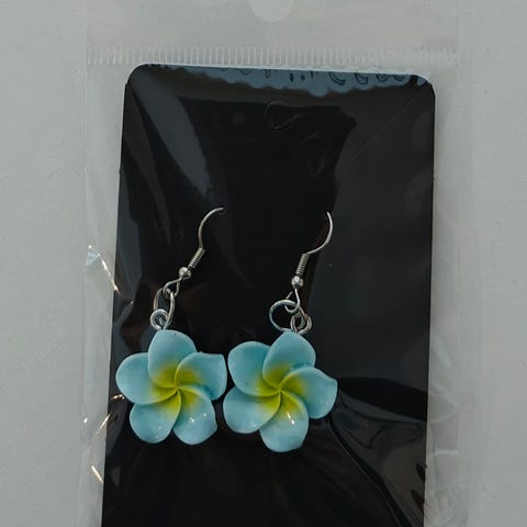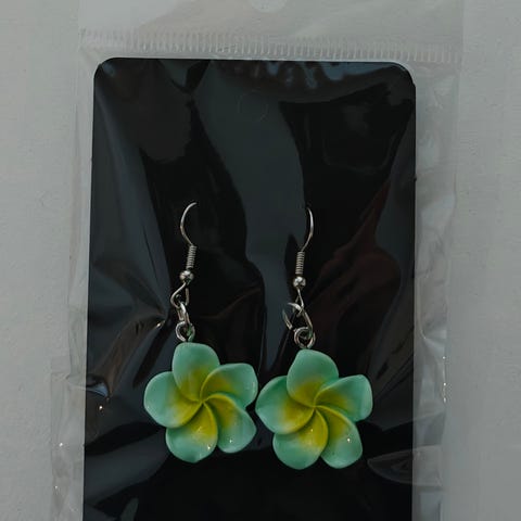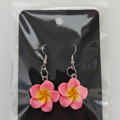 Uudet, käsityönä valmistetut persikan väriset kukkakorvikset nyt entisen yrityksen lopettamisen myötä poisto myynnissä.