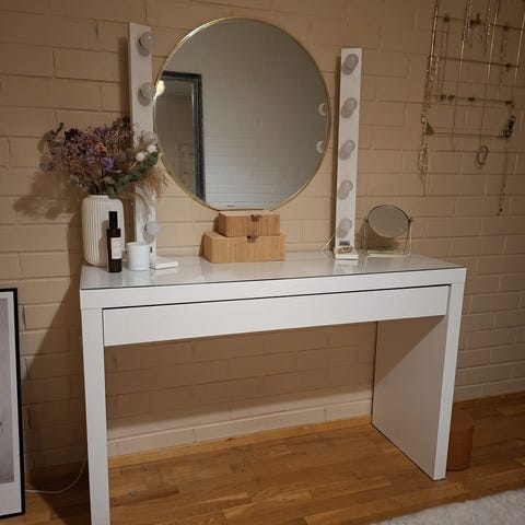 Hyvässä kunnossa oleva Ikea Malm valkoinen meikkipöytä.