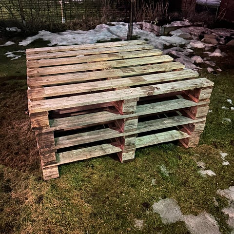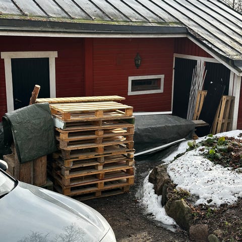 Annetaan kuormalavoja ja muuta puutavaraa. Kaskelantiellä.