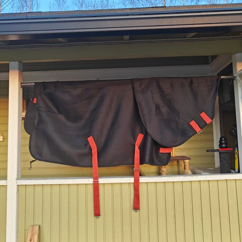 Jo hyvin pidetty mutta vielä käyttökelpoinen esim varsalle. Kyljessä näkyy reikä. Soljet ruosteessa. 12 e posteineen