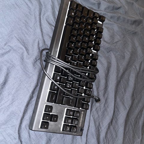 Steelseries apex pro rannetuki mukaan ainut miinus että yksi magneetti irronnut rannetuesta mutta tallessa. Hinta:50€