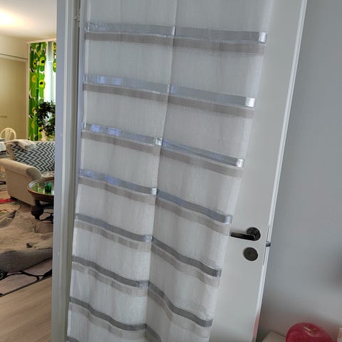 Vallila verhot turkoosi-valkoinen. Kevyet, läpikuultavat sivuverhot, joissa yläosa on valkoinen ja alaosa turkoosi. Sopivat käytettäväksi olohuoneessa, makuuhuoneessa tai muissa asuintiloissa . Materiaali 100%polyesteri ohutta kangasta. Verhoissa on yläreunassa nauha ripustusta varten. Helppohoitoiset.(Näitä mahdollista ostaa enempi on 6 kpl) Savuton koti. Postit ostajalle, ei toridiili. Yhteishinta.