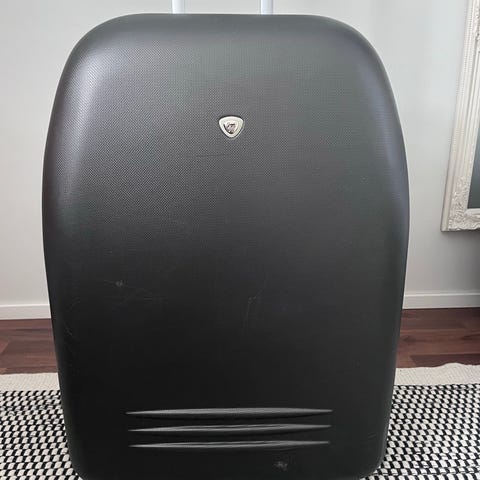 Pehmeärakenteinen matkalaukku, jossa vetoketjusuljenta ja sisäpuolella hihnat tavaroiden kiinnittämiseen. Ulkopuolella vetoketjutaskuja pientavaroille. Päältä kahva irronnut ja vetoketjujen vetimet rikki. Vetoketju toimii kyllä ongelmitta. Merkki ei tiedossa mutta julkaisua varten täytyi valita joku merkki jotta pääsi eteenpäin. Korkeus 56 cm ja leveys 36 cm.