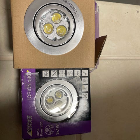 Noor S 300 LED-valaisinsetti sisältää kaksi 5,5 W:n upotettavaa valaisinta. Valaisimet tuottavat lämpimän valkoista 3000 K valoa ja vastaavat valoteholtaan noin 35 W halogeenilamppua. Setti soveltuu esimerkiksi kaapistojen, työtasojen tai muiden sisätilojen kohde- ja yleisvalaistukseen. Pakkaus sisältää valaisimet ja tarvittavat asennusosat valmistajan ohjeiden mukaisesti. asennettavaksi. 11 pakettia. 15€/pkt tai kaikki kerralla 130€.