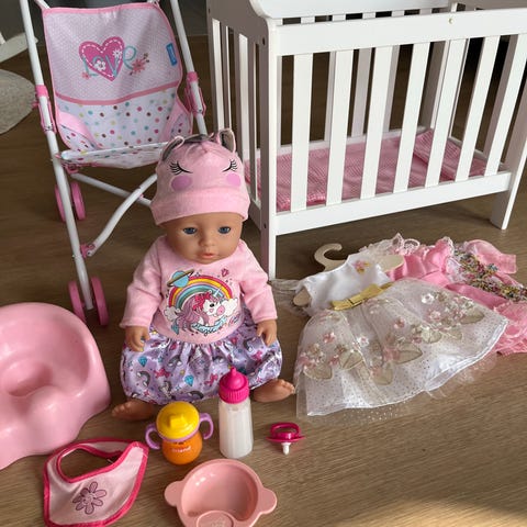 Siistikuntoinen baby Born nukke ja potta. Todennäköisesti settiin löytyy mukaan vielä ruokalautanen ja lusikka. Hp. 15e noudolla Kivistöstä Vantaalta.