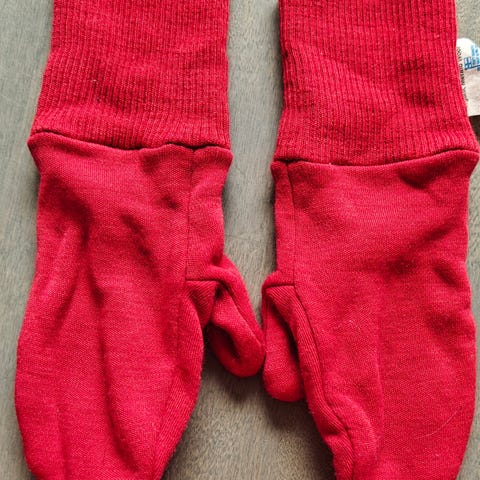 Ollut käytössä muutaman kerran toisten hanskojen alla. Ei pesty kertaakaan.