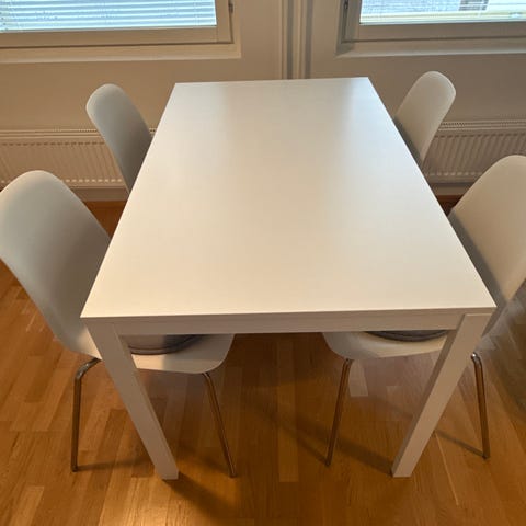 Ikean jatkettava ruokapöytä. Väri valkoinen. Pöydän pituus lyhyimmillään 65 cm ja pisimmillään 123 cm.