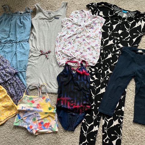 Keväinen/kesäinen vaatepaketti hyväkuntoisia vaatteita. Koot 140-146. Useita merkkejä: HM, Benetton, NameIt jne. Sisältää useita paitoja, shortseja, mekkoja, farkut, takki.