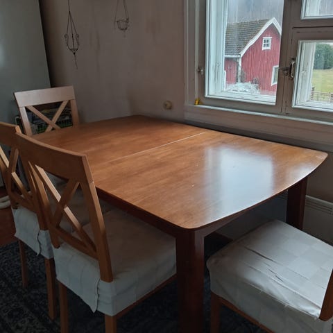 Pöytä 130*80 ja 4 tuolia kohtuukuntoisia.