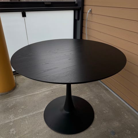 Myydään hyväkuntoinen ruokapöytä. Ostettu Jyskistä n. 5v sitten. Halkaisija 80,5cm. Korkeus 72cm.