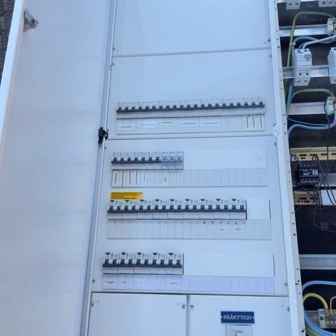 Sähkökeskus kaappi ja pistorasiat