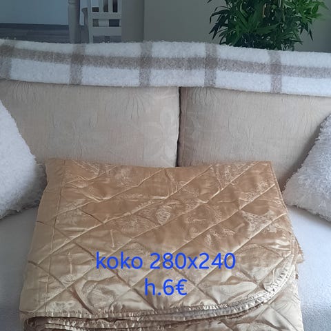 Parisängyn päiväpeitto.
