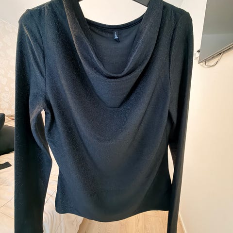 Ohutta ja kevyttä materiaalia. Viileän tuntinen päällä. Niskassa halkio ja nappi.