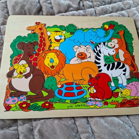 Helppo palapeli lapsille. 30 palaa. Ei laatikkoa. Parissa palassa pientä jälkeä ja kulumaa.