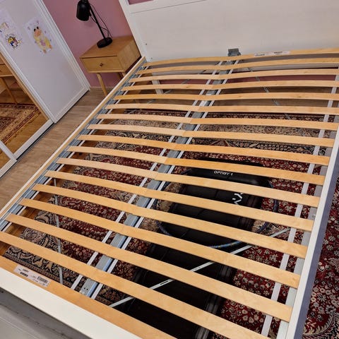 Annetaan vintage valkoinen parisänky. Sängyn päädyssä valot, vihreä nahka tausta ja tasot. Sängyn pohja lastulevyä. Sängyn alapuoli umpinainen. Patjat, tyynyt ja peitteet ei kuulu hintaan, eikä myynnissä.