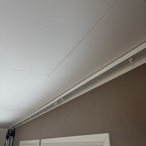 Yksi kiskoista sahattu kahteen osaan, mitat noin 100cm ja 40cm. Nämä osat voidaan kuitenkin yhdistää täysmittaiseksi asennuspalalla.