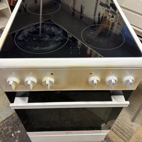 Electrolux keraaminen liesi uunilla. Laitteessa on neljä keraamista keittoaluetta tasaisella lasipinnalla. Etupaneelissa on mekaaniset säätönupit lämpötilan ja keittoalueiden ohjaamiseen sekä pieni näyttö. Uunissa on lasiluukku ja sisällä ritilätasoja. Takana on liitäntäkaapeli ja tyyppikilpi, josta löytyvät tarkemmat sähkötekniset tiedot ja kytkentäohjeet. Soveltuu vapaasti seisovaksi liedeksi keittiöön, jossa on sähköliitäntä uunille ja liedelle.