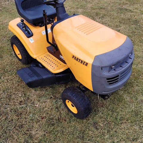 Päältäajettavan ajoleikkurin 42" leikkuupöytä. Alunperin john deere l105 leikkurista. Maalipinta hilseilee muuten OK.