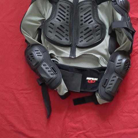 Fox suojapanssari, musta. Panssarissa on kovamuoviset suojat selälle, rintakehälle, olkapäille, kyynärpäille ja käsivarsille sekä leveä vyötärö- ja munuaissuoja. Suunniteltu moottoriurheiluun ja muuhun lajiin, jossa tarvitaan ylävartalon suojaa. Kiristettävät hihnat ja tarrakiinnitykset mahdollistavat istuvuuden säätämisen. Soveltuu käytettäväksi ajotakin alla tai sellaisenaan ajovarusteena.