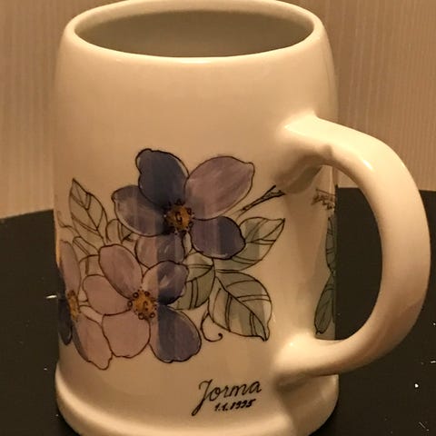 Tuoppi 5dl posliini käsinmaalattu vaaleanpunaiset kukat