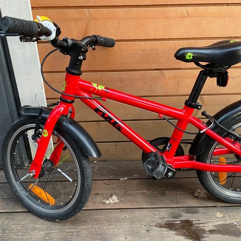 Yhden tytön hyvin vähän käyttämä ja perushuollettu juuri äsken. Säilytetty ulkovarastossa ja se näkyy parin ruuvin ruosterippeenä (ei vaikuta ajamiseen). Käsijarrut ottaneet vähän osumaa (ks. kuvat) ja aavistuksen verran muita jälkiä. Jalustaa tässä ei ole.
