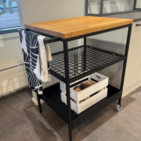 Kaksi tasoa tarjoiluun tai säilytykseen. Pyörät tekevät vaunusta helpon siirtää ja yläosassa on kätevä kahva.