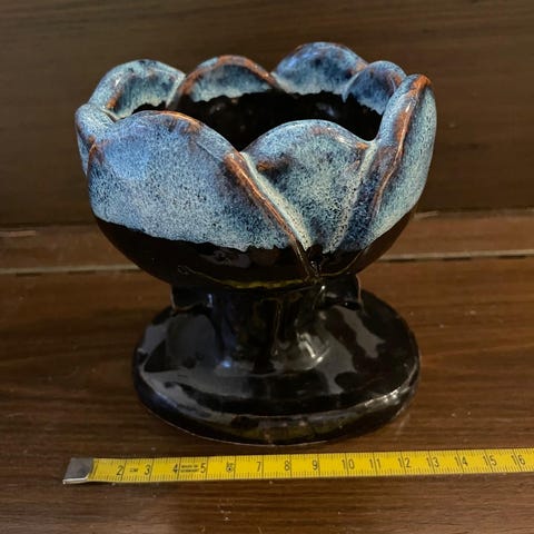 Myynnissä Pentikin vanha pieni kukan muotoinen kynttilänjalka. Kynttilän kolo ei kovin paksulle kynttilälle. Kunnossa ei moitteita.