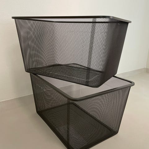 Stokke Tripp Trapp syöttötuoliin sopivat adapterit ja metallinen harmaa Ikean Trofast säilytyskori. Yhteishinta koko setille!