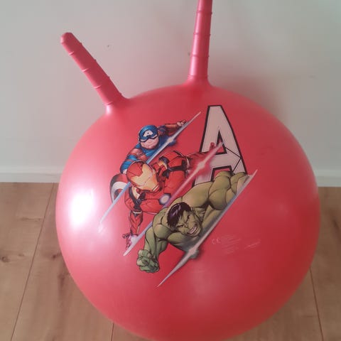 Isohko pomppupallo. Tällä hyppii isompikin lapsi. Tällähetkellä korkeus n.50cm ja yli, mutta pystyy pumppaamaan ilmaa lisääkin. Oisko ehkä jopa 60cm. Ulkona ollut leikeissä mutta pesemällä saa vielä sisäleikkeihinkin.
