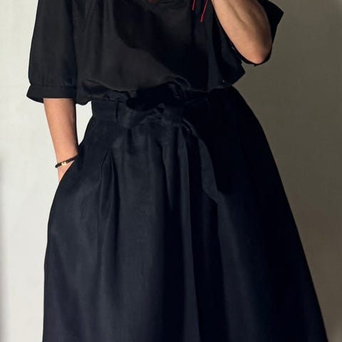 Koko M/L. 100% pellava. VY: joistaa 126 cm:iin (kuminauhavyötärö), pituus 85, sisälahkeen pituus 48, lantion yp: 133. Taskut. Asfalttiharmaat