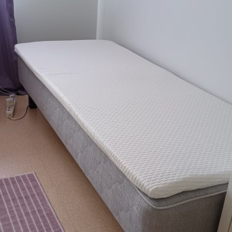 Hyvä lapsen / nuoren sänky uuden tieltä. Pieneksi menee mutta venyy täyteen mittaan, puuta ja kestävä ollut. Joku lyhyt patjakin on kaapissa tuohon.