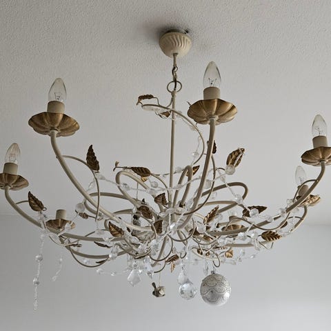Kaunis kruunun muotoinen valaisin. Valaisimen korkeus 50 cm ja leveys 35 cm.