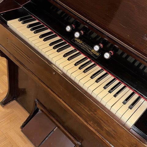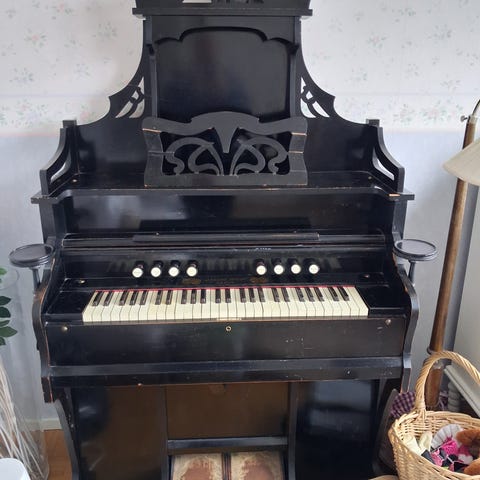 Koivusta tehty,poljettava urkuharmooni.Siisti.