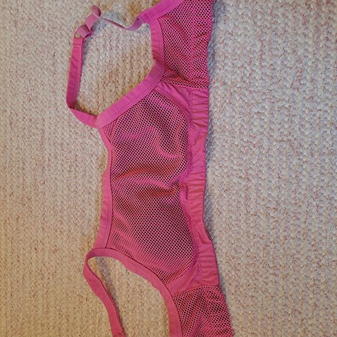Laadukas vähän käytetty napakka urheiluliivi. Alareunan ympärys 74cm. En muista merkkiä ja merkinnät irronneet pesussa.