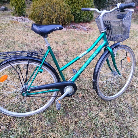Crescent kaupunkipyörä naisille, runkokoko M ja 28" (700c) renkaat. Matala astuva runko helpottaa kyytiin nousemista. Pyörässä on perinteinen kaupunkipyörän ajoasento ja varusteluun kuuluu takatavarateline. Sopii arkiajoon ja asiointimatkoille kaupunkiympäristössä. Väri vaalea.