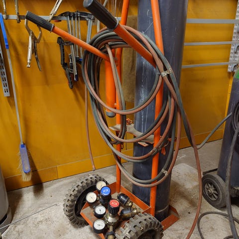 Kuvan kaasupillisarja poltin,letkut noin 10m, uudehkot paineensäätimet+takaiskut, erikokokoisia pillejä mukaan ja pari vara tiivistettä.