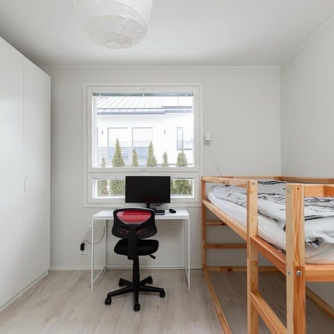 Kokonaisuuteen kuuluvat parvisänky, laatikollinen pöytä, vaatekaappi 4 tasolla sekä kirjahylly.