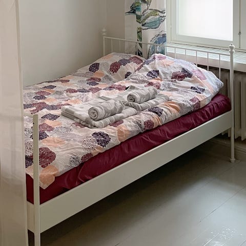 Mukaan saa patjan halutessaan, patja käytetyssä kunnossa ja pari tahraa, joita en ole yrittänyt kunnolla puhdistaa. Petauspatja ei sisälly kauppaan.