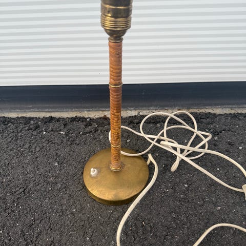 Hyväkuntoinen rottinkivarjostimella oleva pöytälamppu. Korkeus noin 20cm.
