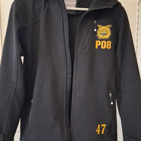 Ilves softshell-takki. Koko 160cm. Joukkue- ja numerotiedot peitetty mustalla teipillä.