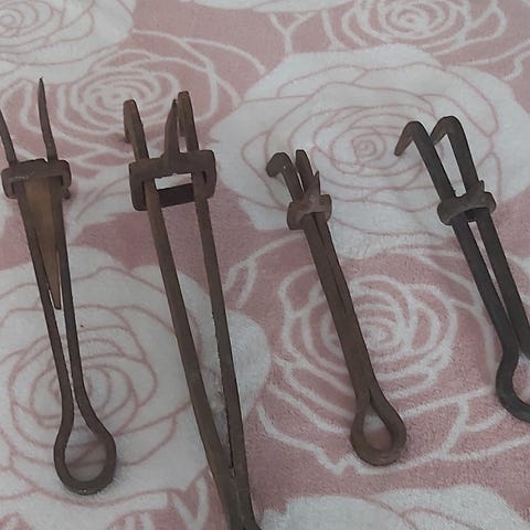 4kpl vanhoja teriä .Yhdestä en leimoja löytänyt .Varmaan jonkun kyläsepän takoma. Nouto Kotkasta tai mahdolliset postit päälle . Keskipituus terillä n, 600mm.